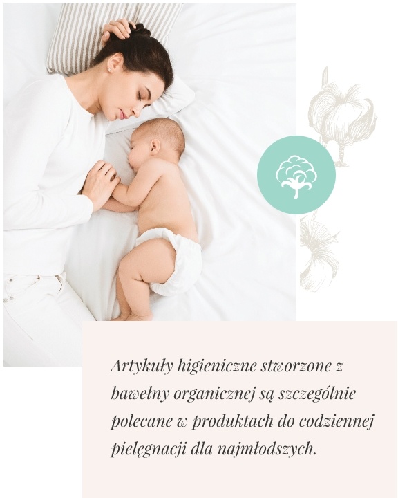 W ten sposób bawełna organiczna staje się bezpieczna i bardziej przyjazna nawet dla najbardziej wrażliwych rodzajów skóry, dlatego też stosowana jest w artykułach dla dzieci. Bawełna organiczna użyta do produkcji naszych artykułów jednocześnie pomaga chronić równowagę ekosystemu, ponieważ nie przyczynia się do zanieczyszczenia środowiska, zachowując integralność gleby i wody. Produkcja bawełny organicznej jest kontrolowana i certyfikowana przez EcoCert.